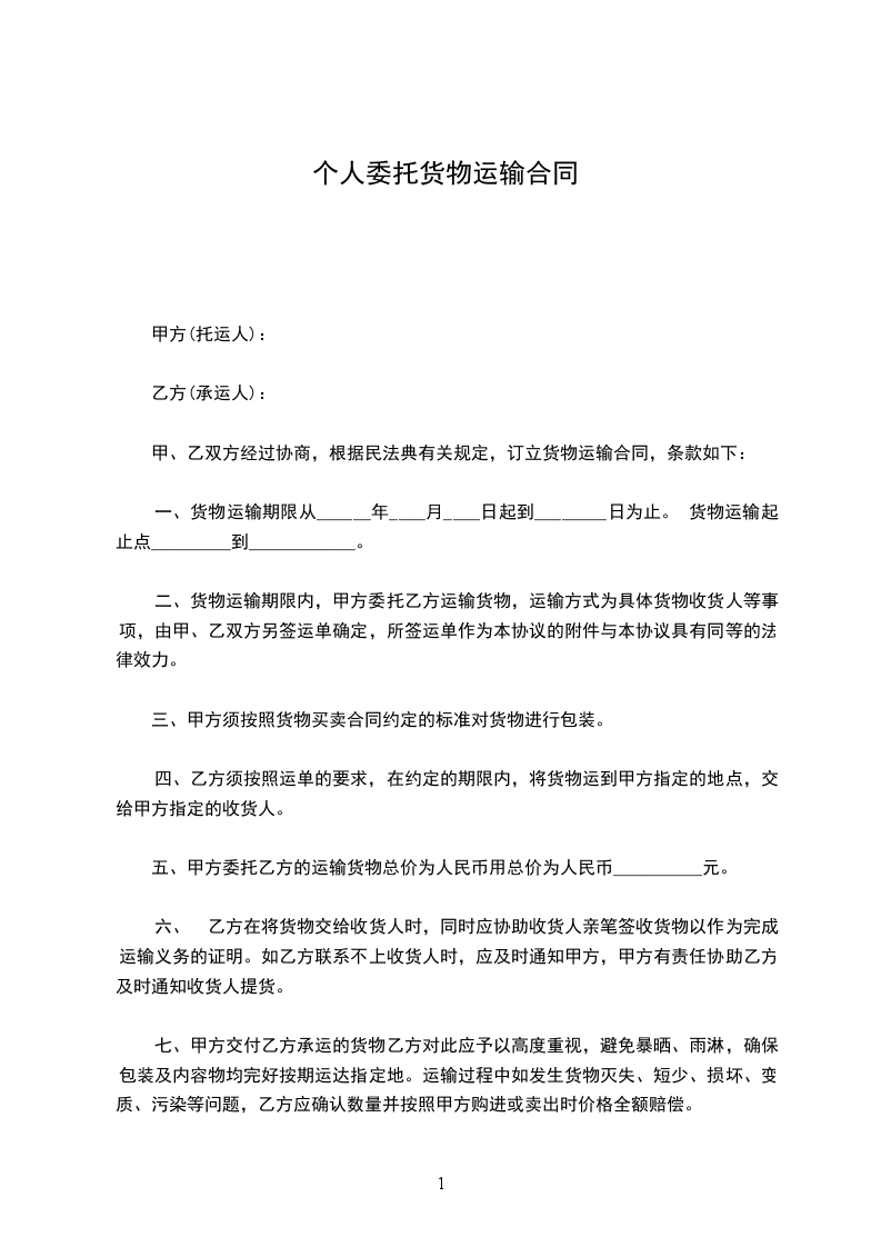 合同期内,甲方委托乙方运输货物,货物内容为__________________。运输方式为__________________。