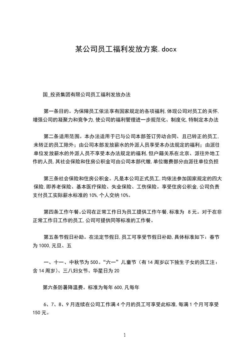 第一条目的。为保障员工依法享有国家规定的各项福利,体现公司对员工的关怀,增强公司的凝聚力和竞争力,使公司的福利管理进一步规范化、制度化,特制定本办法。