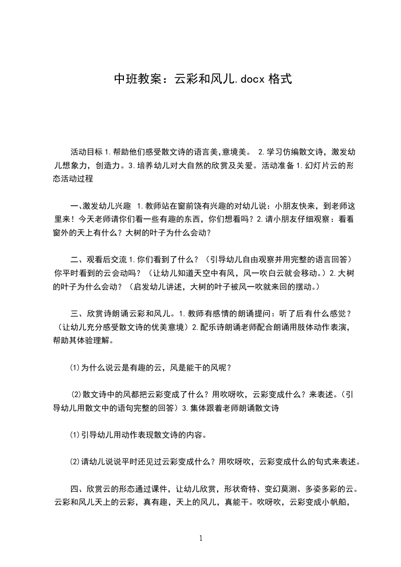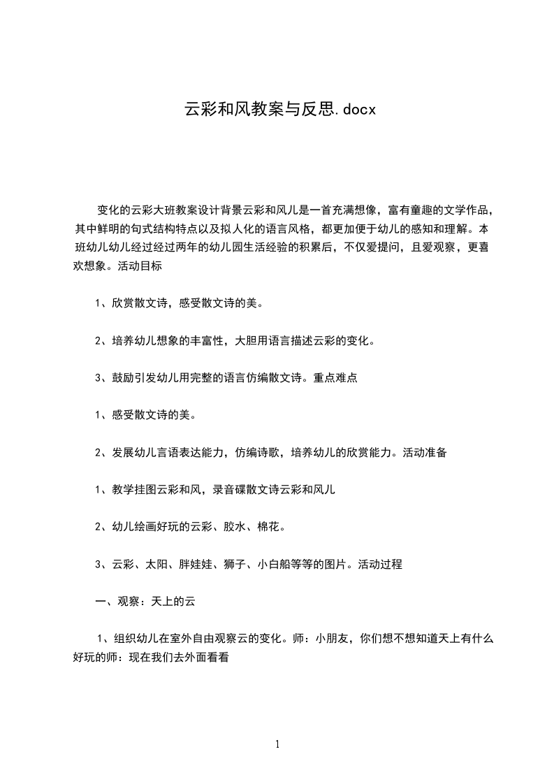 变化的云彩大班教案设计背景云彩和风儿是一首充满想像,富有童趣的文学作品,其中鲜明的句式结构特点以及拟人化的语言风格,都更加便于幼儿的感知和理解。本班幼儿幼儿经过经过两年的幼儿园生活经验的积累后,不仅爱提问,且爱观察,更喜欢想象。活动目标