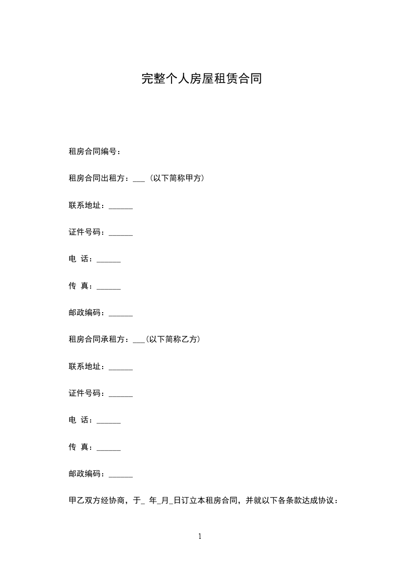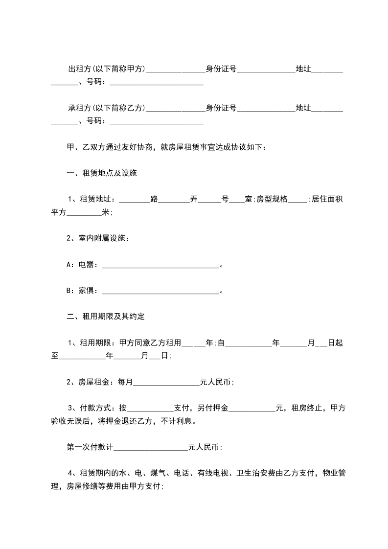 出租方(以下简称甲方)_______________身份证号_______________地址_______________、号码:________________________