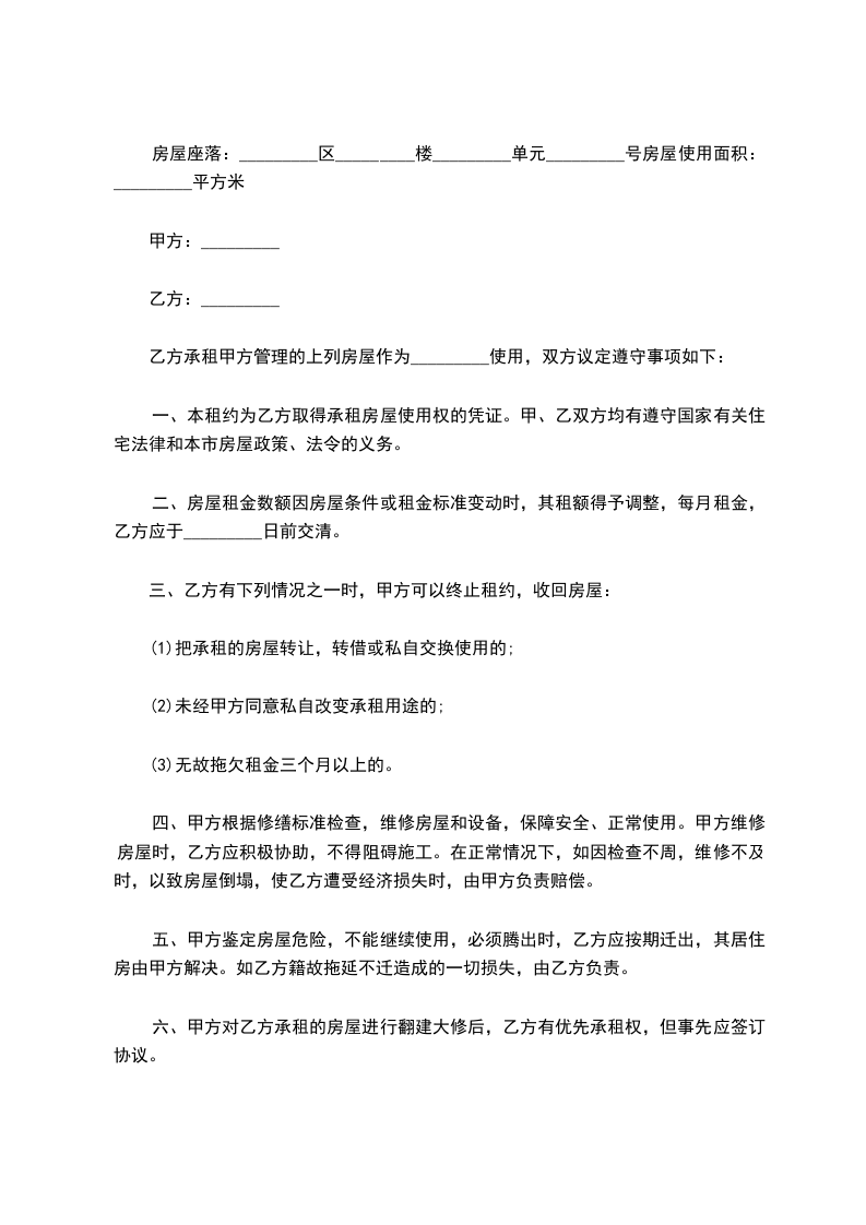 1、租赁地址:________路________弄______号____室;房型规格_____;居住面积平方_________米;