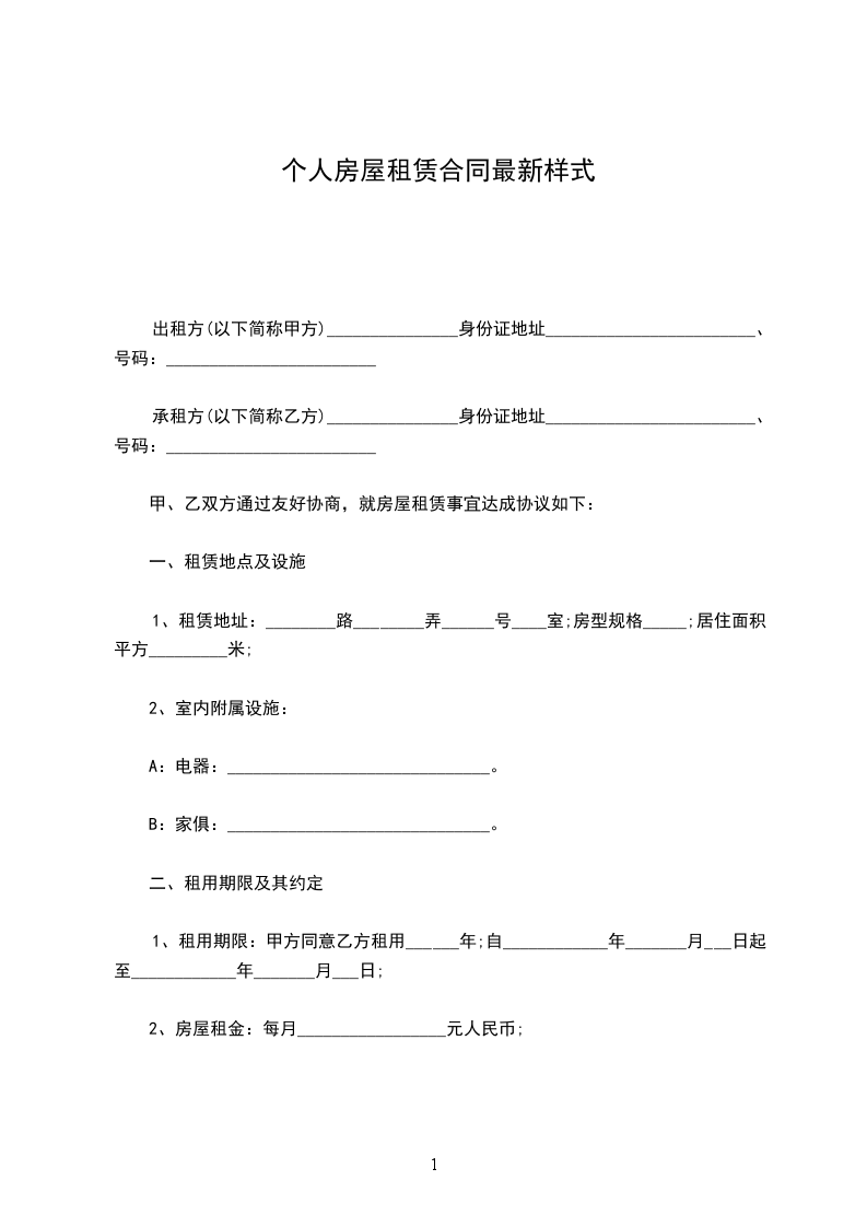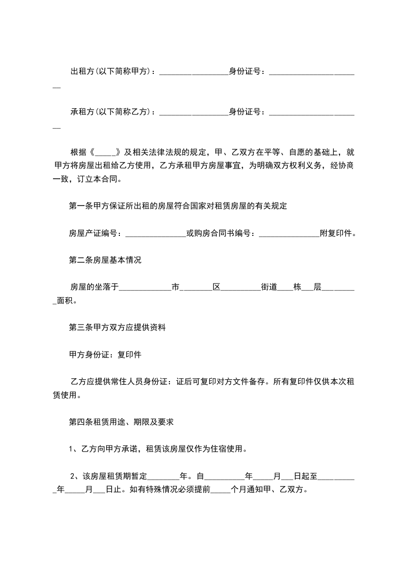 1、租赁地址:________路________弄______号____室;房型规格_____;居住面积平方_________米;
