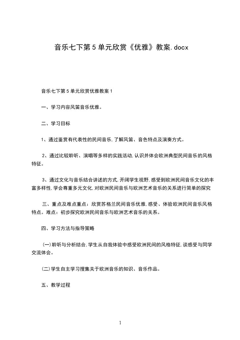 音乐七下第5单元欣赏优雅教案1