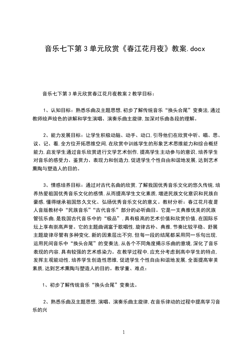 三、重点及难点重点:欣赏苏格兰民间音乐优雅,感受、体验欧洲民间音乐风格特点。难点:初步探究欧洲民间音乐与欧洲艺术音乐的关系。