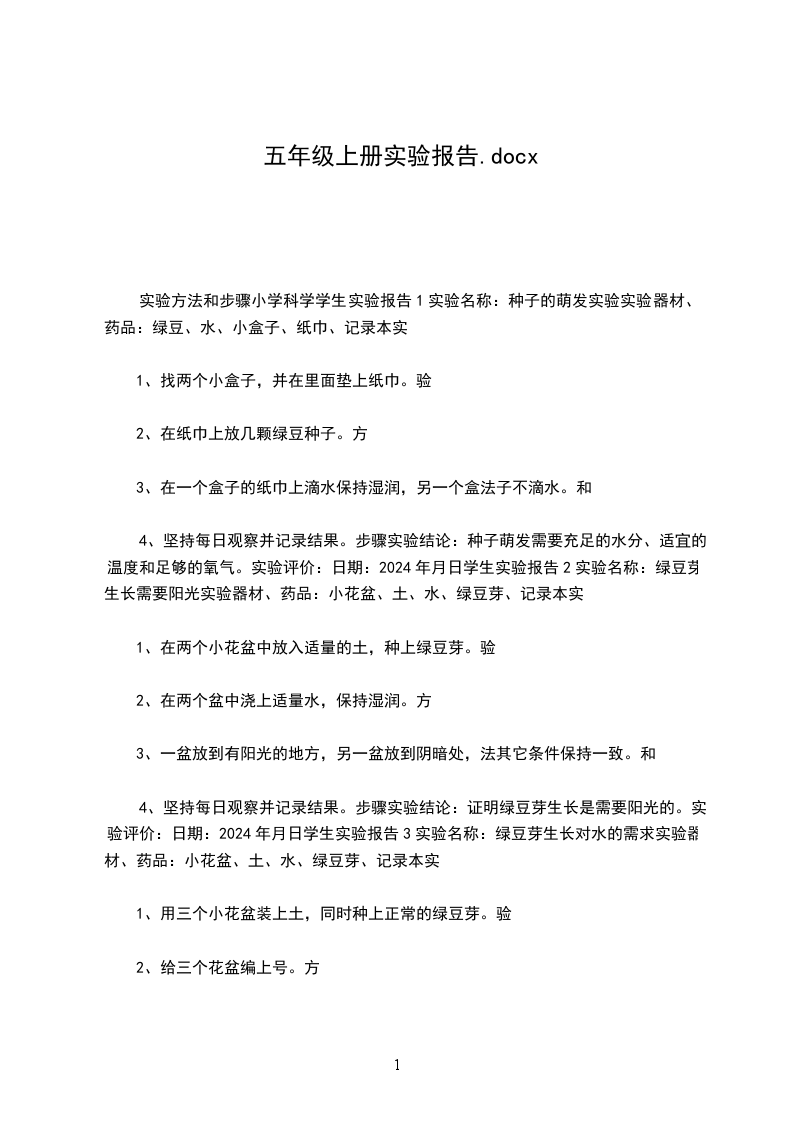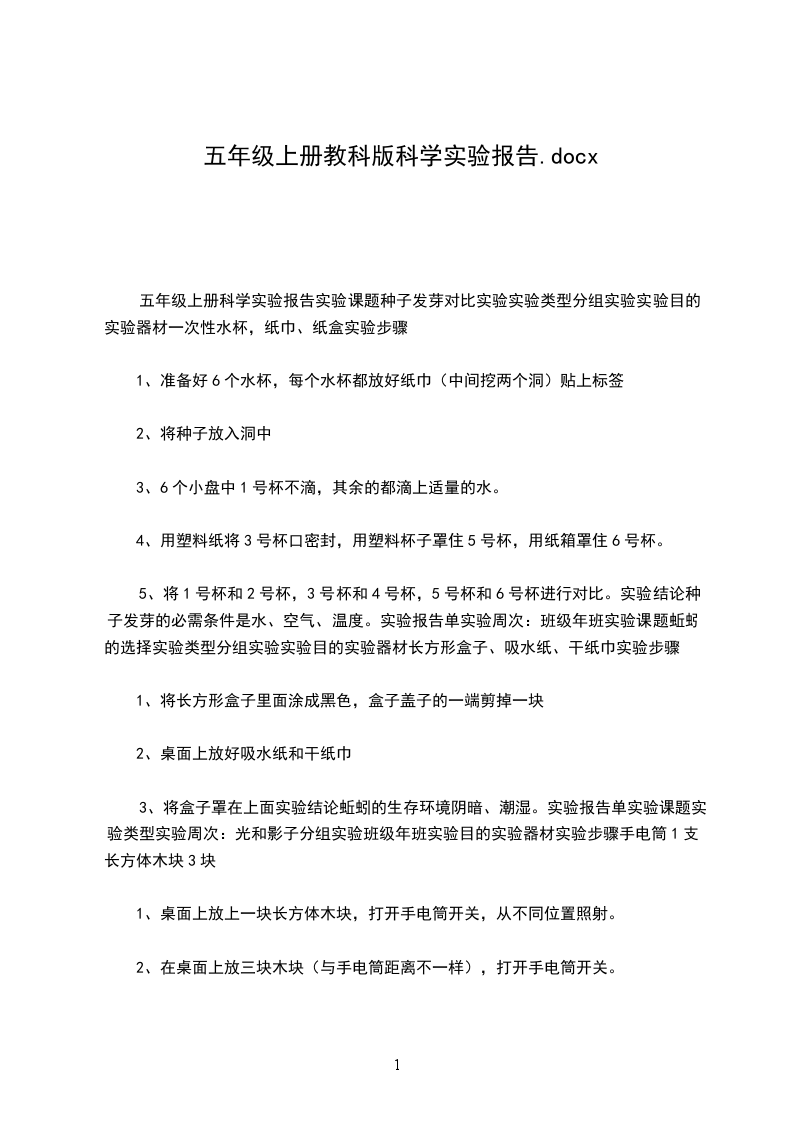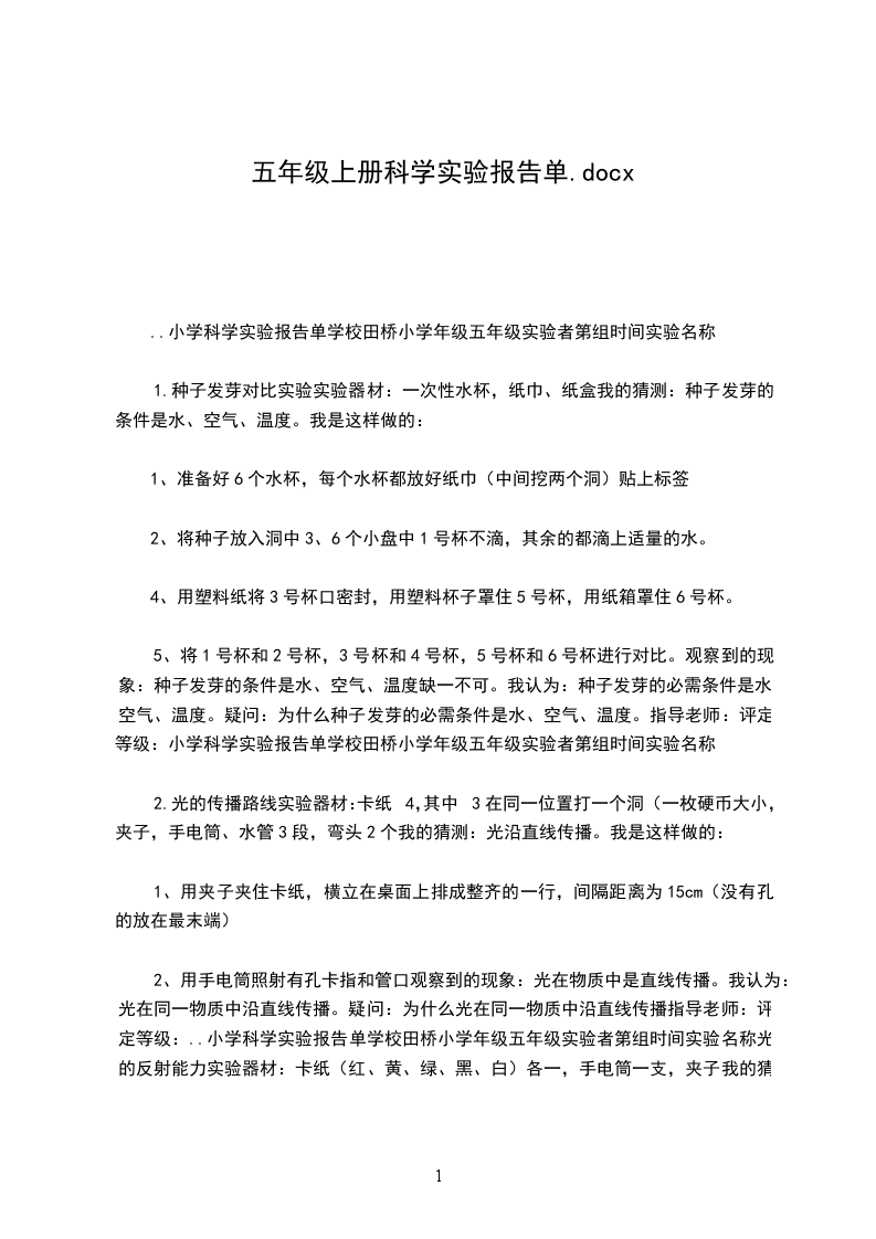 五年级上册科学实验报告实验课题种子发芽对比实验实验类型分组实验实验目的实验器材一次性水杯,纸巾、纸盒实验步骤