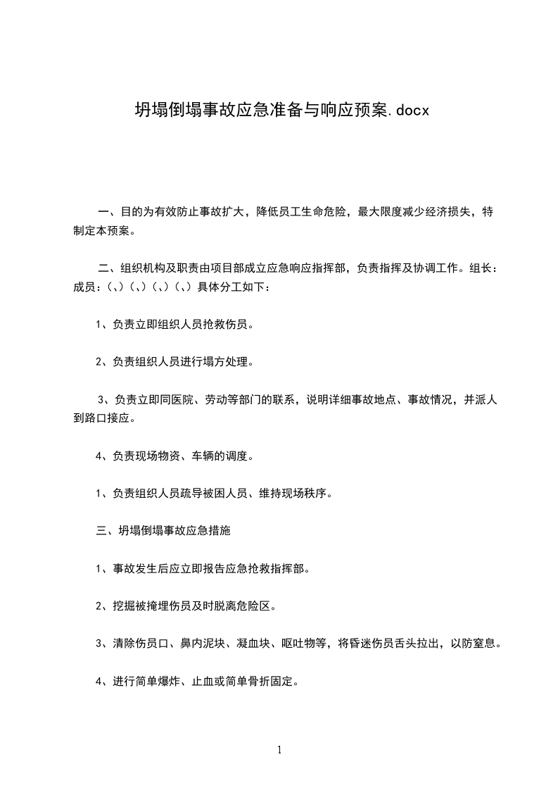 10、在没有人员受伤的情况下,现场负责人应根据实际情况研究补救措施,在确保人员生命安全的前提下,组织恢复正常施工秩序。