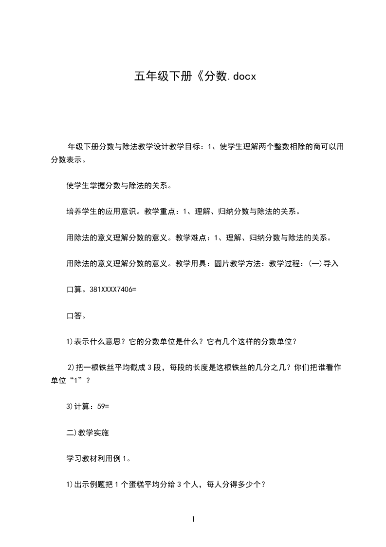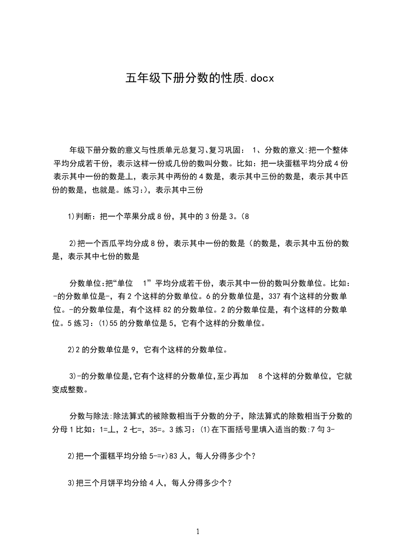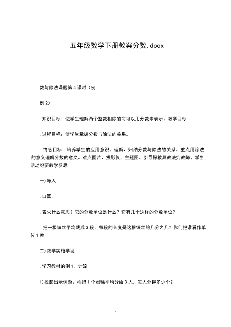 2、体会分数的实际应用价值,拓展对分数的认识。教学过程:一、复习引入。