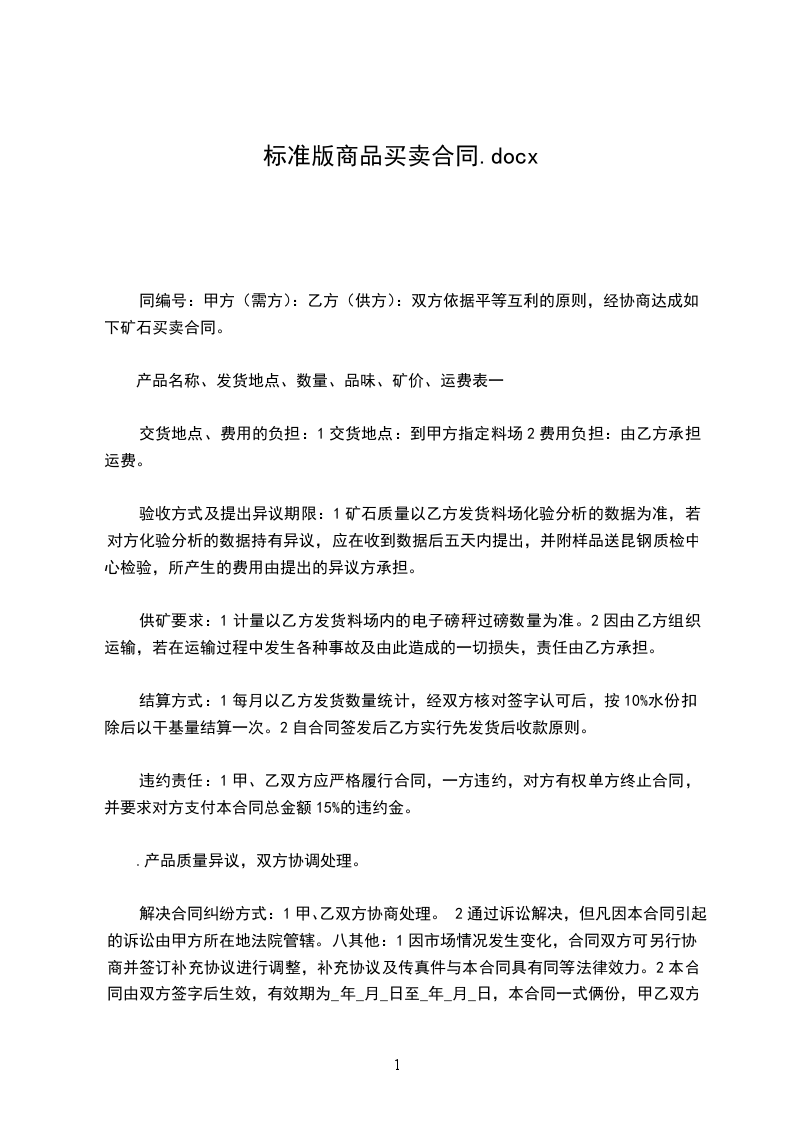 同编号:甲方(需方):乙方(供方):双方依据平等互利的原则,经协商达成如下矿石买卖合同。