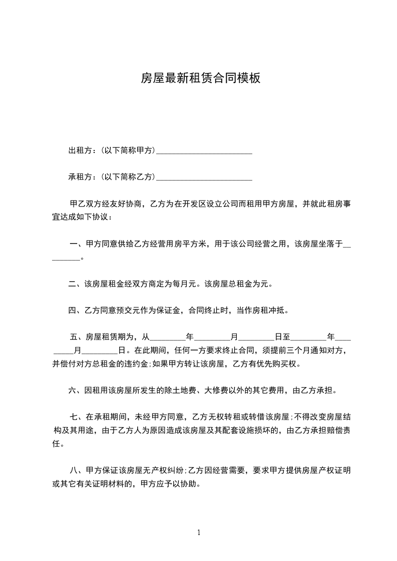 一、甲方同意供给乙方经营用房平方米,用于该公司经营之用,该房屋坐落于_________。