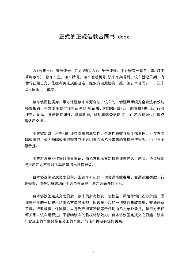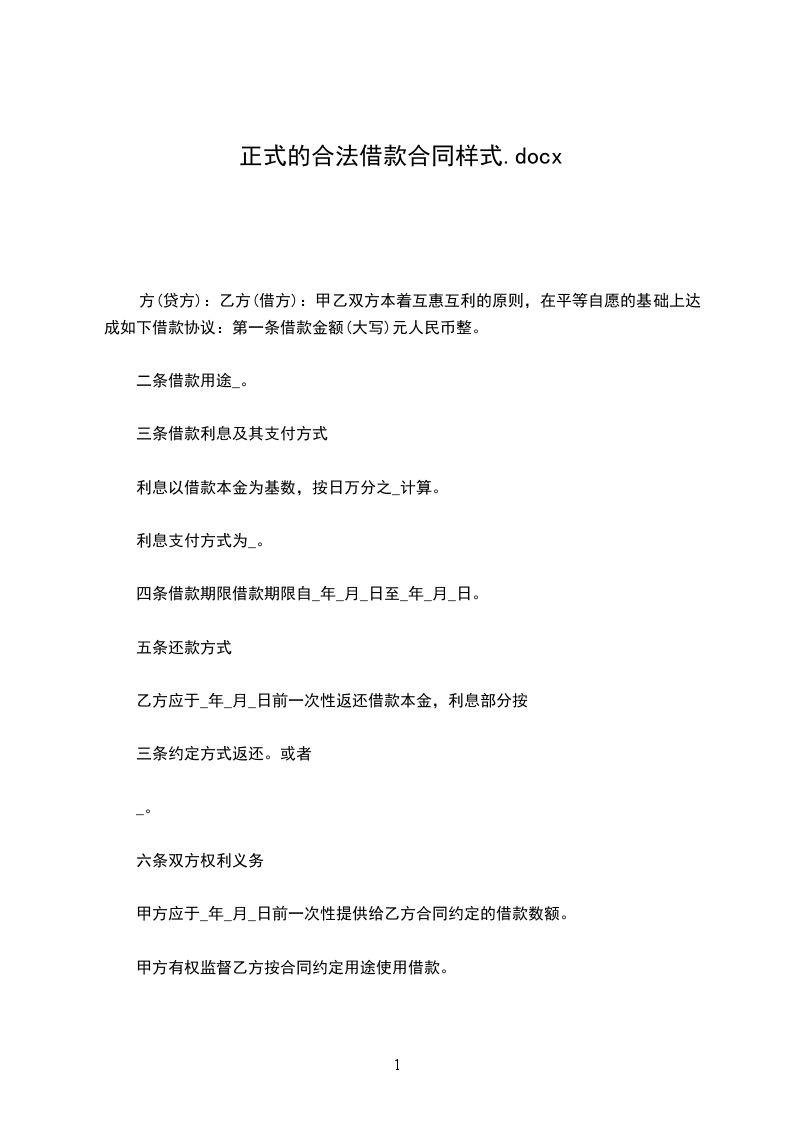 方(贷方):乙方(借方):甲乙双方本着互惠互利的原则,在平等自愿的基础上达成如下借款协议:第一条借款金额(大写)元人民币整。