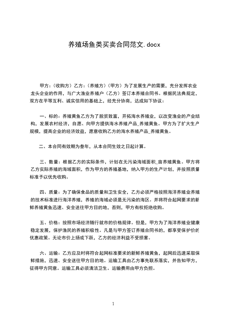 买卖合同是一方转移标的物的所有权于另一方,另一方支付价款的合同。转移所有权的一方为出卖人或卖方,支付价款而取得所有权的一方为买受人或者买方。接下来就由小编给大家分享几篇,供大家阅读参考,希望能够有所帮助。甲方:(收购方)乙方:(养殖方)(甲方)为了发展生产的需要,充分发挥农业龙头企业的作用,与广大渔业养殖户(乙方)签订本养殖合同书。根据中华人民共和国合同法规定,双方在平等互利、诚实信用的基础上,经充分协商,达成如下协议:一、标的:养殖黄鱼乙方为了脱贫致富,开拓海水养殖业,以改变渔业的产业结构,发展农村经济,自愿、向甲方提供海水养殖产品_养殖黄鱼。甲方为了扩大生产规模,提高企业的经济效益,愿意收购乙方的海水养殖产品_养殖黄鱼。