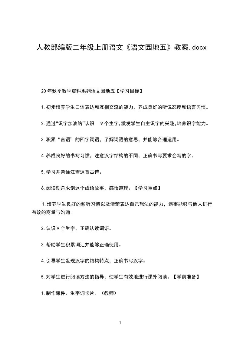 20年秋季教学资料系列语文园地五【学习目标】