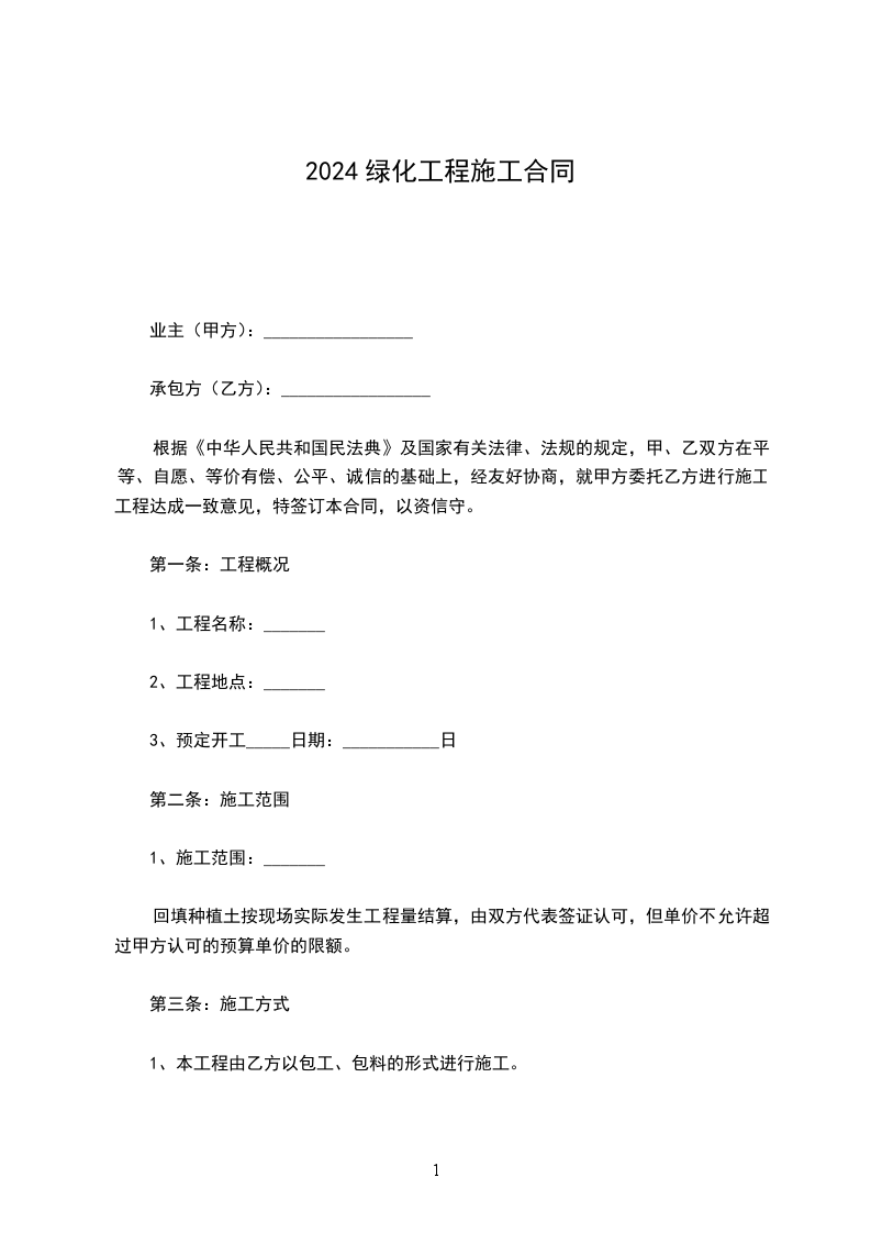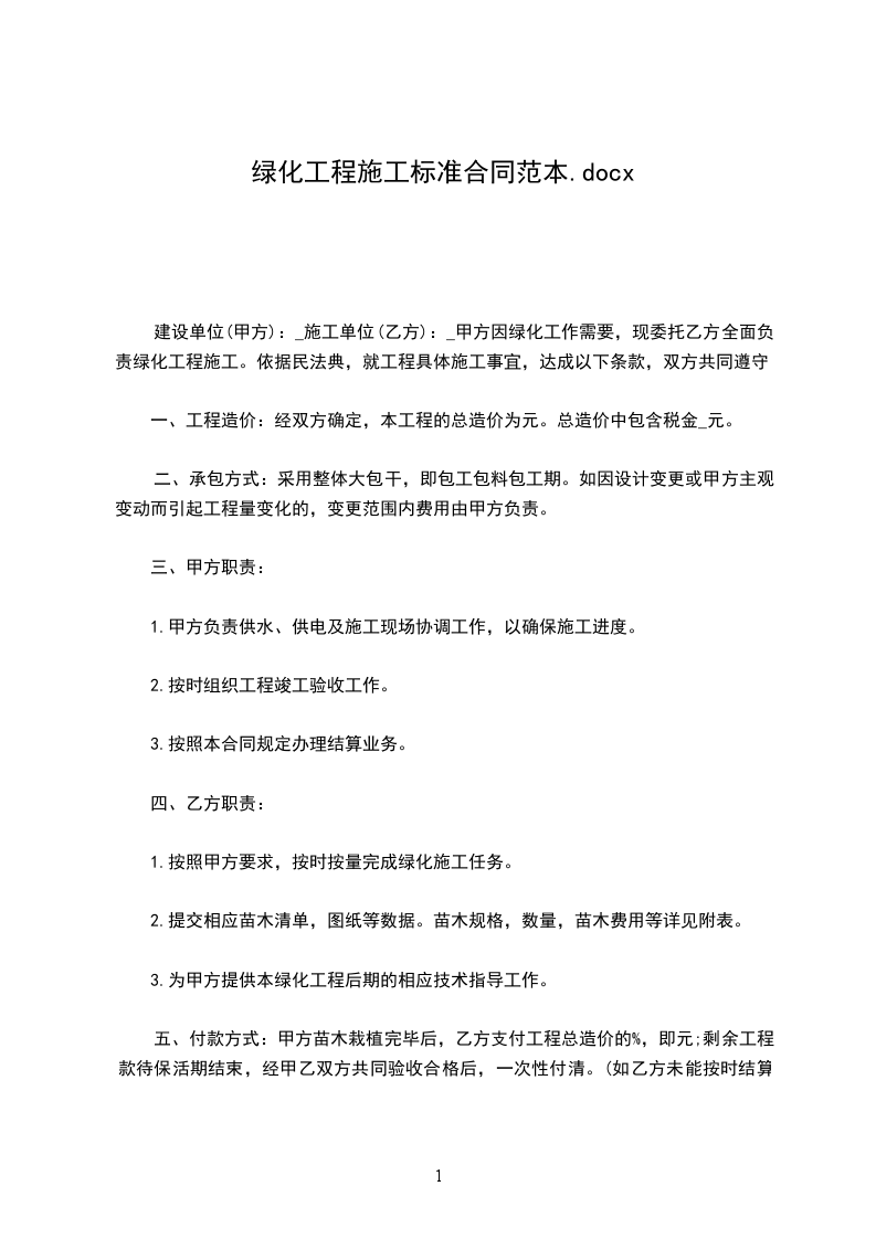 工程承包方式:包工、包料、养护成活、包工期、保质量、保安全