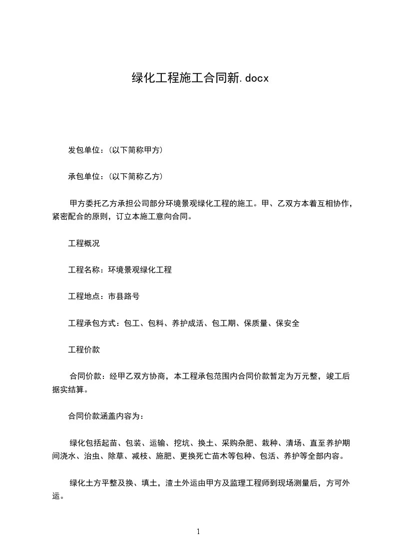 甲方委托乙方承担公司部分环境景观绿化工程的施工。甲、乙双方本着互相协作,紧密配合的原则,订立本施工意向合同。