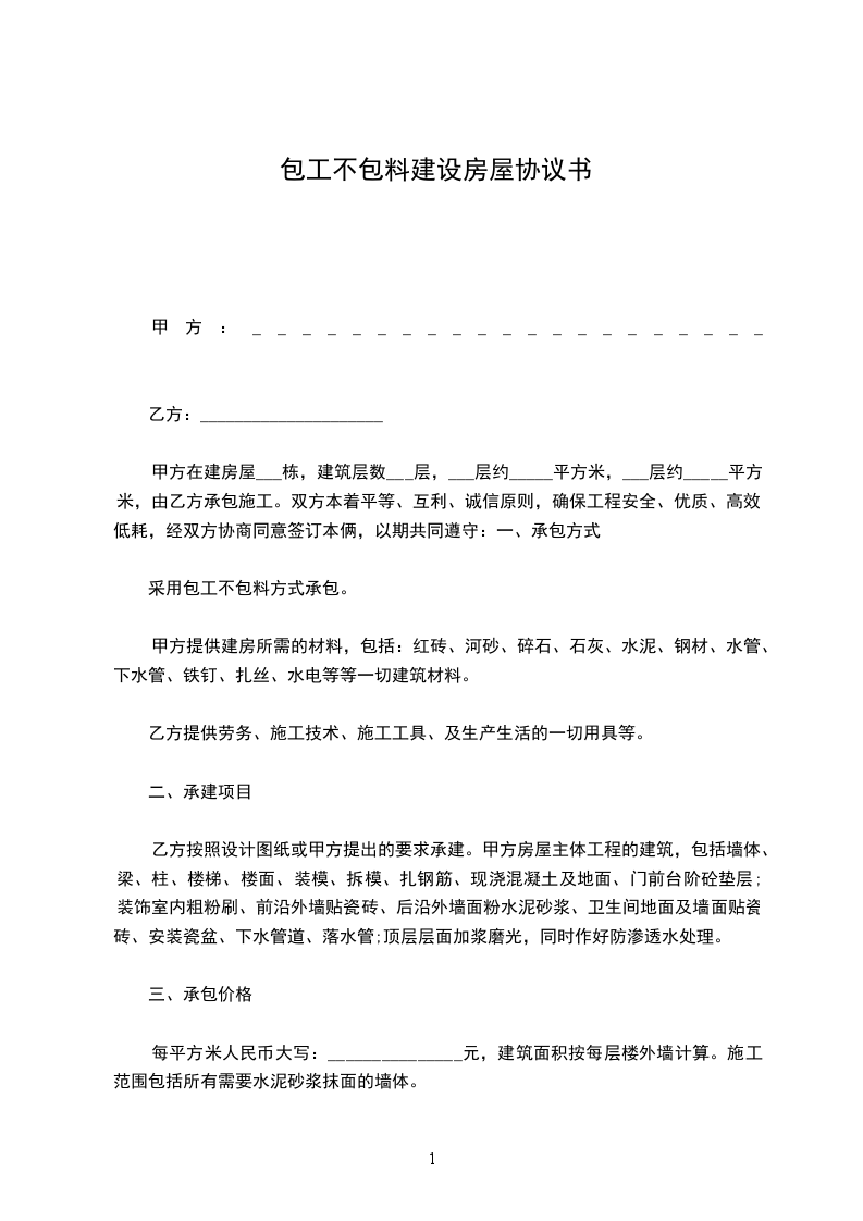1、工价:按房子图纸建筑面积上的计算,________________。