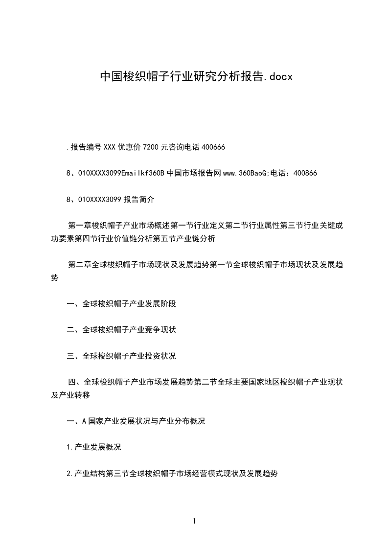 8、010XXXX3099相关报告O20版中国梭织帽子市场深度调研分析报告O200820年)O20-20年中国梭织帽子市场供需调查与投资价值分析研究报告