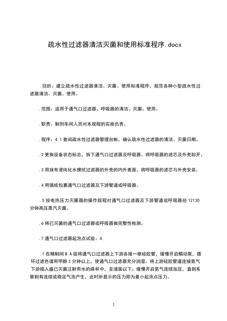 .目的:建立疏水性过滤器清洁、灭菌、使用标准程序,规范各种小型疏水性过滤器清洁、灭菌、使用。