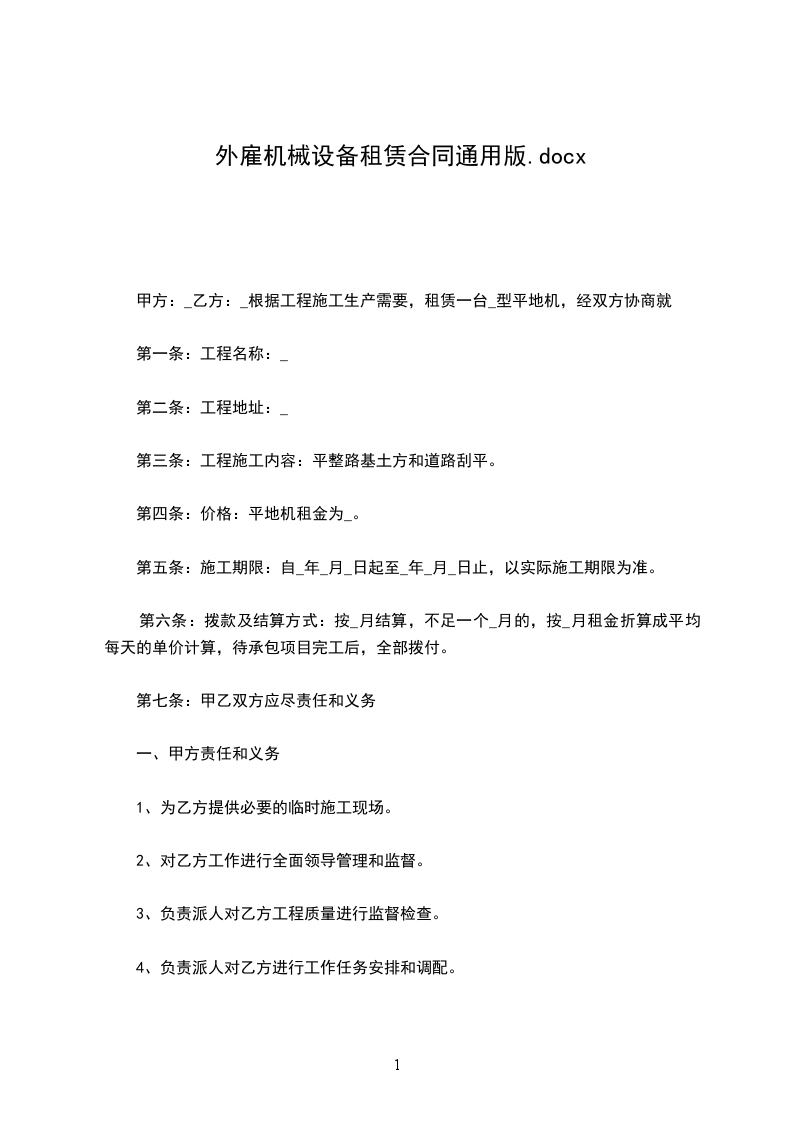 6、有关约定:(1)乙方负责提供设备操作者,操作者必须持证上岗,严格按照设备操作规程作业,并负责设备的日常维修保养工作。
