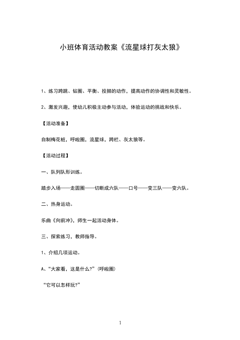 6、熟悉故事喜洋洋与灰太狼的情节。活动过程: