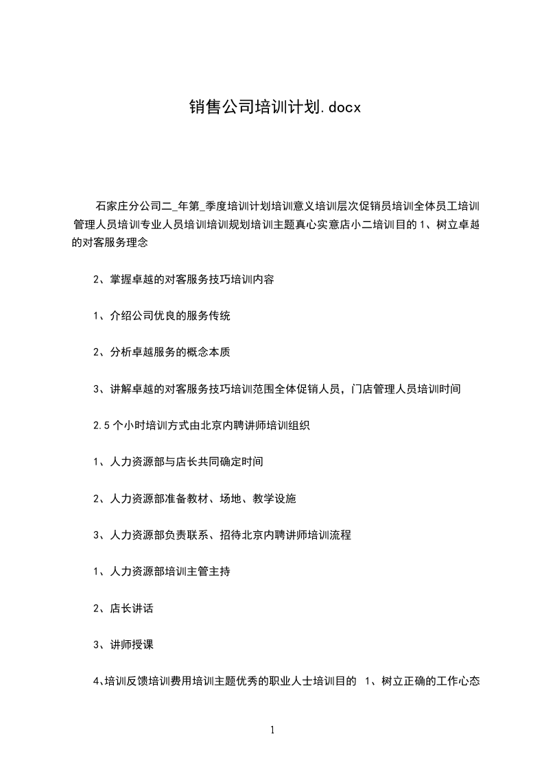石家庄分公司二_年第_季度培训计划培训意义培训层次促销员培训全体员工培训管理人员培训专业人员培训培训规划培训主题真心实意店小二培训目的1、树立卓越的对客服务理念