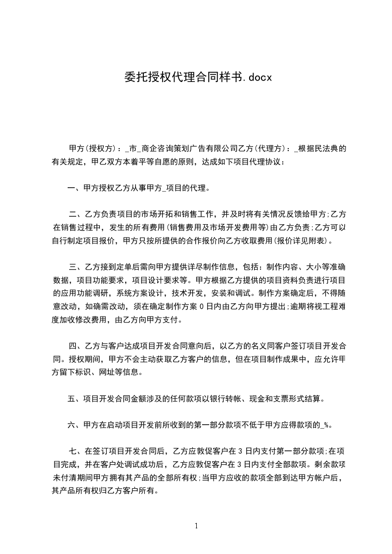 甲方(委托方):_地址:_电话:_乙方(代理方):_地址:_电话:_