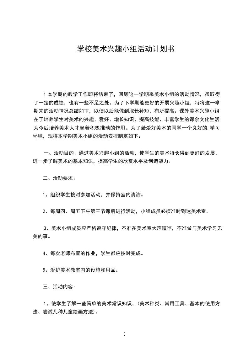 四、采取的措施:(1)美术教师要认真负责,把它看成是学校教育的组成部分,使小组活动开展得生动、活泼、丰富。