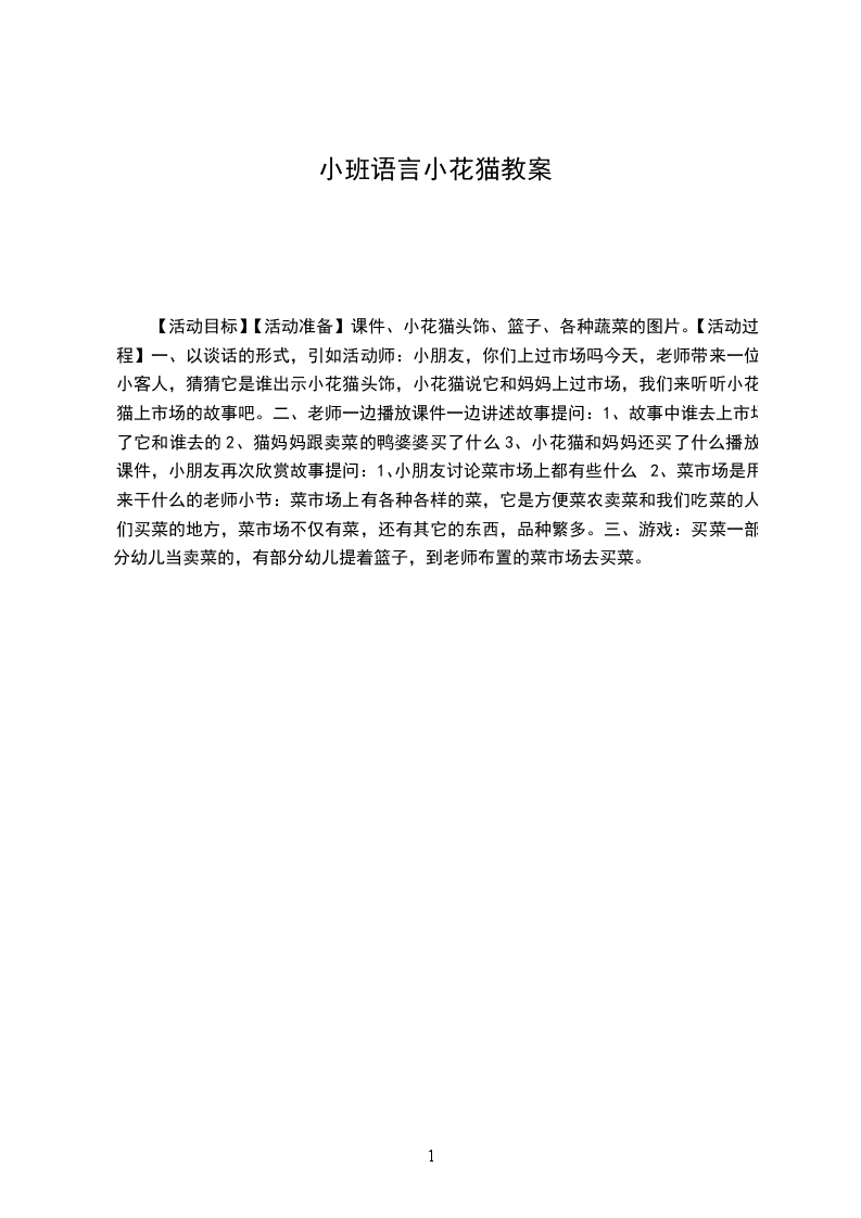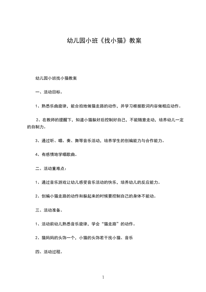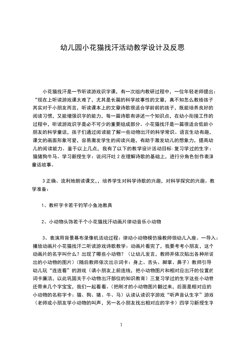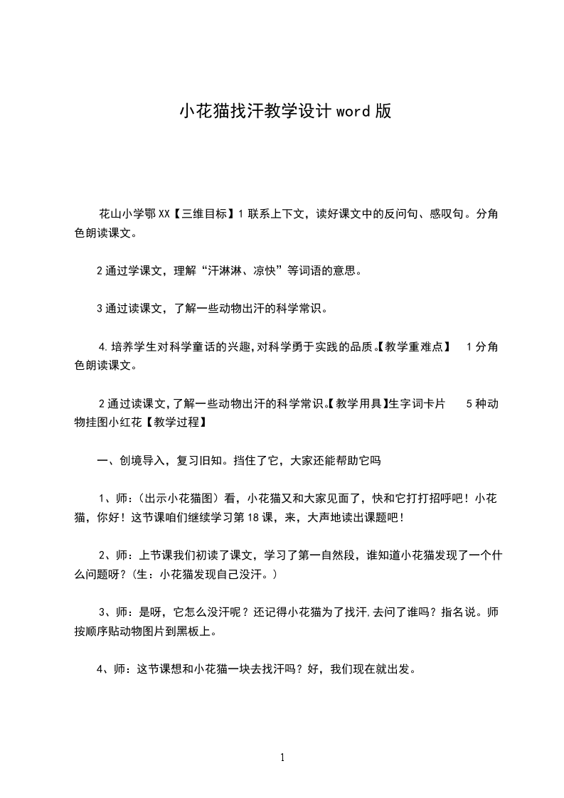 小花猫找汗教学目的: