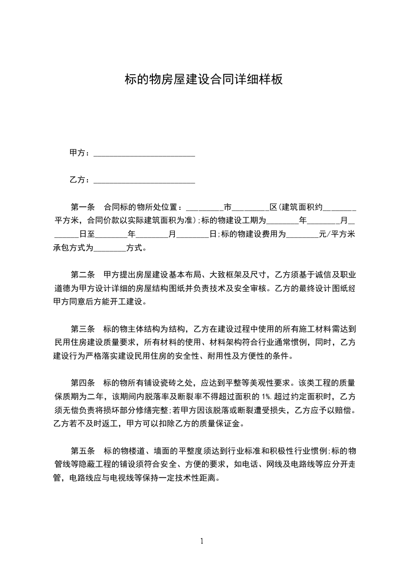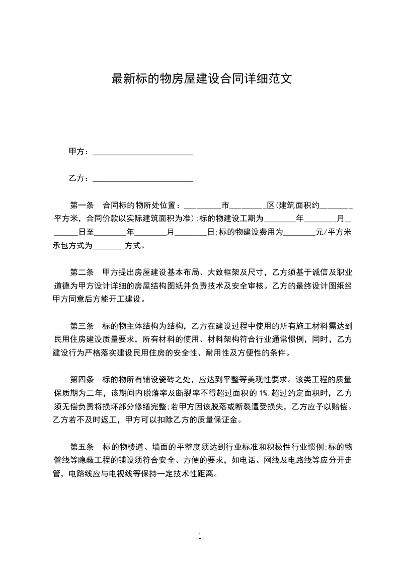 标的物房屋建设合同详细样式
