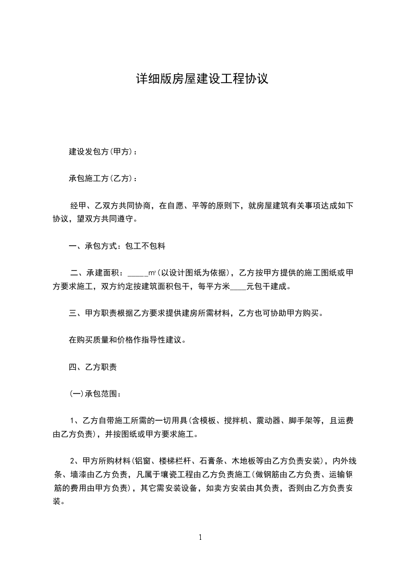 甲方在建房屋一栋,建筑层数两层,一层约平方米,二层约平方米,由乙方承包施工。双方本着平等、互利、诚信原则,确保工程安全、优质、_____、低耗,经双方协商同意签订本俩,以期共同遵守: