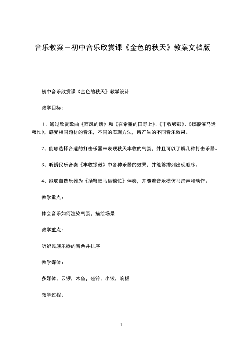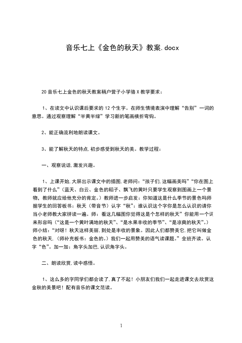 20音乐七上金色的秋天教案稍户营子小学骆X教学要求: