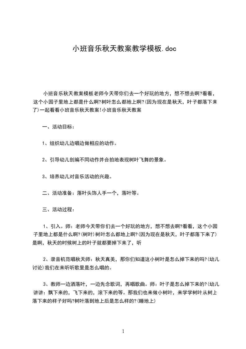 3、能了解秋天的特点,初步感受到秋天的美。教学过程: