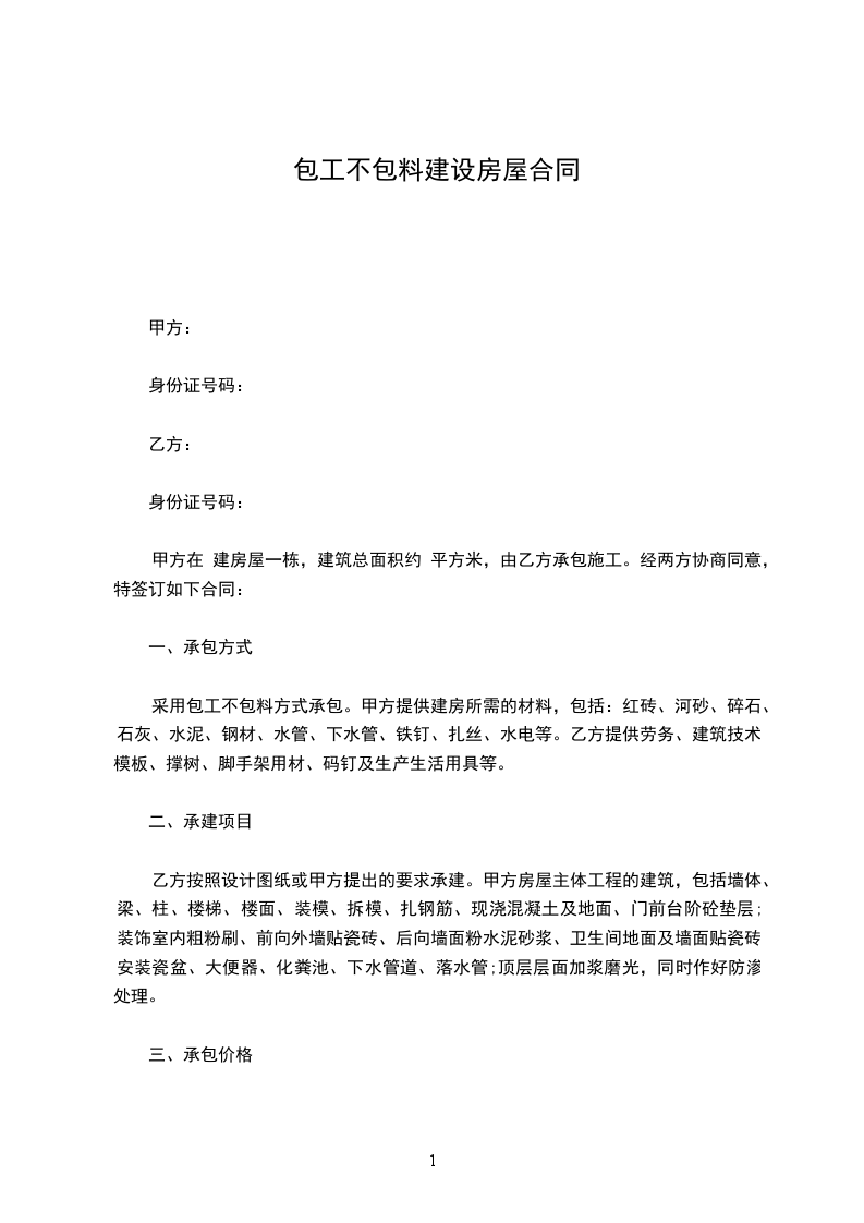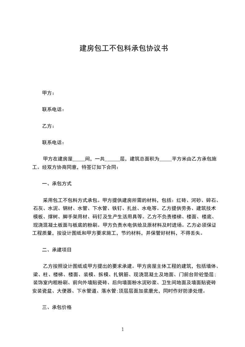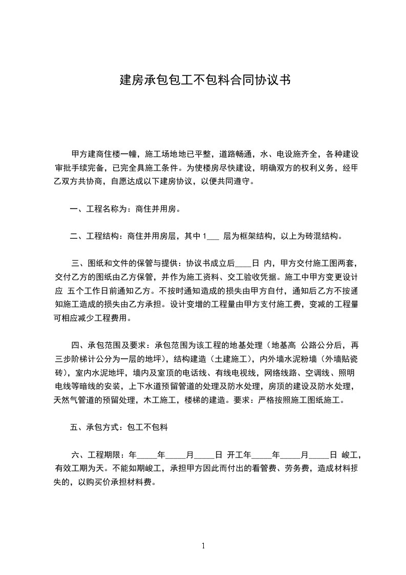 甲方在建房屋一栋,建筑层数两层,一层约________平方米,二层约________平方米,由乙方承包施工。双方本着平等、互利、诚信原则,确保工程安全、优质、_____、低耗,经双方协商同意签订本俩,以期共同遵守: