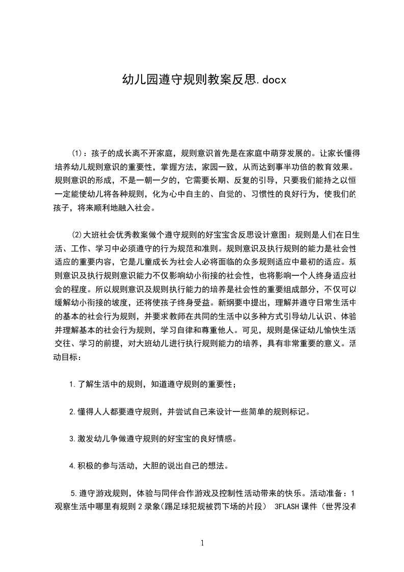1.放PPT,师:其实我们在教案遵守规则含反思活动目标: