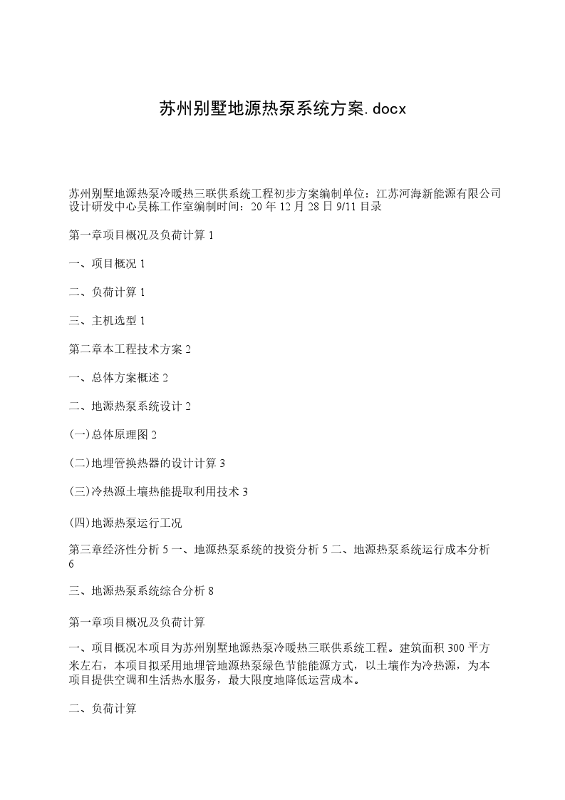 苏州别墅地源热泵冷暖热三联供系统工程初步方案编制单位:江苏河海新能源有限公司设计研发中心吴栋工作室编制时间:20年12月28日9/11目录