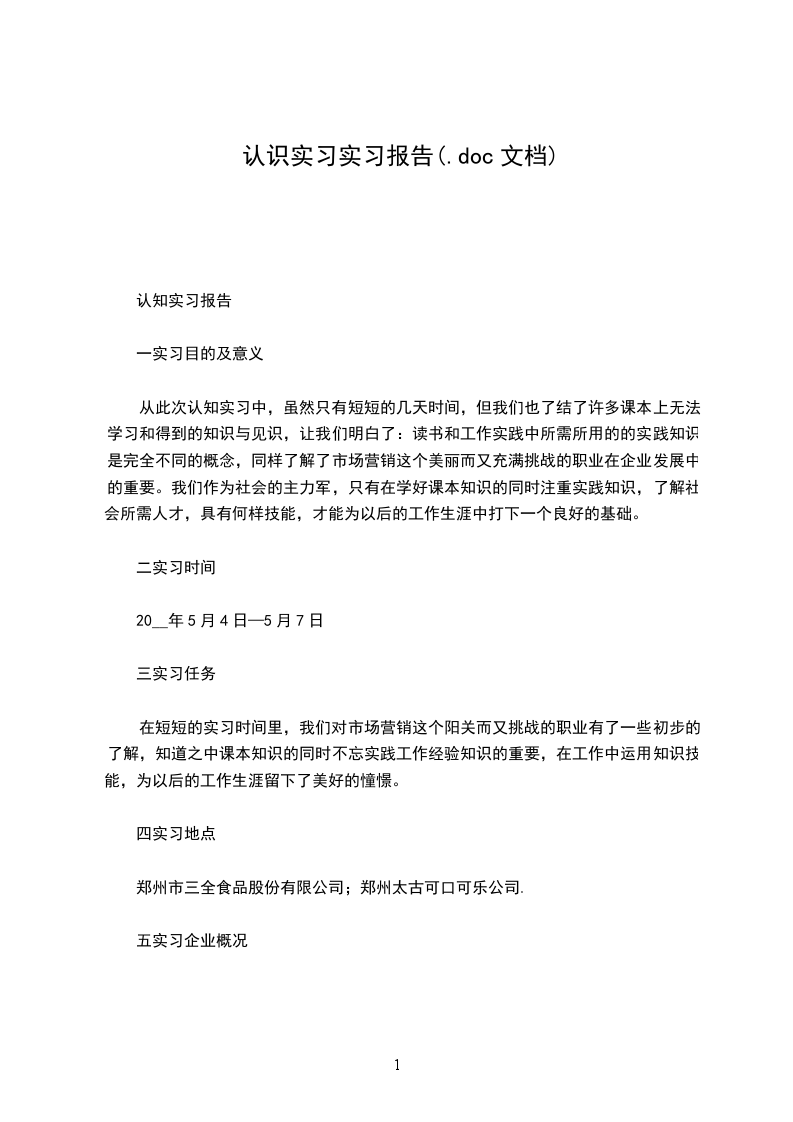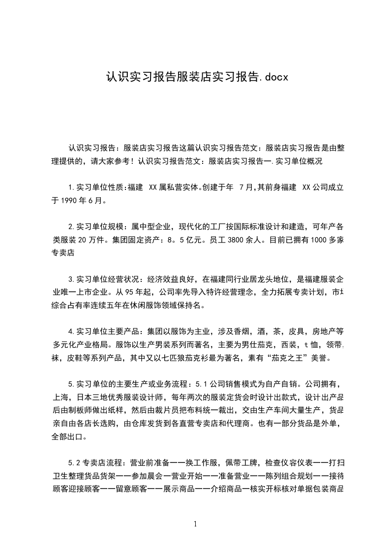 认识实习报告:服装店实习报告这篇认识实习报告范文:服装店实习报告是由整理提供的,请大家参考!认识实习报告范文:服装店实习报告一.实习单位概况
