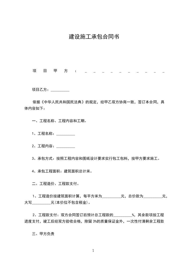 经甲、乙双方协商一致,为明确甲乙双方责任、权利、义务、遵循平等、自愿、公平和诚实信用的原则,双方就本建设工程施工订立本合同: