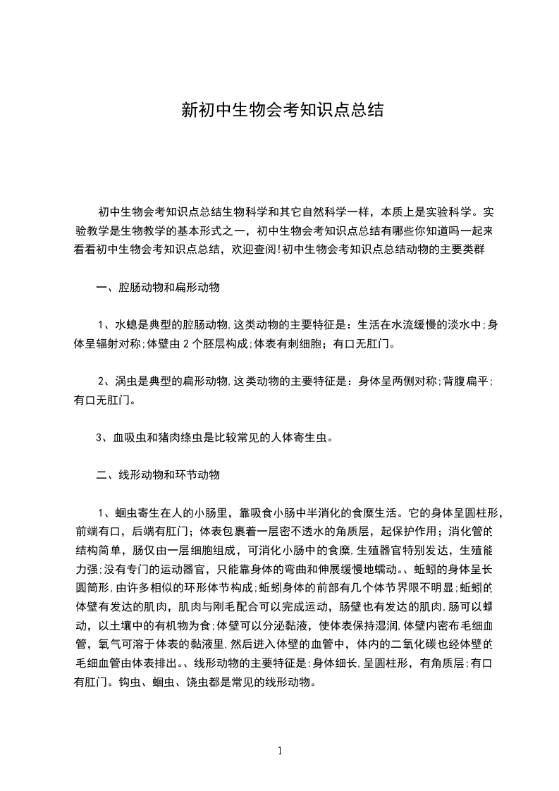 初中生物会考知识点总结生物科学和其它自然科学一样,本质上是实验科学。实验教学是生物教学的基本形式之一,初中生物会考知识点总结有哪些你知道吗一起来看看初中生物会考知识点总结,欢迎查阅!初中生物会考知识点总结动物的主要类群