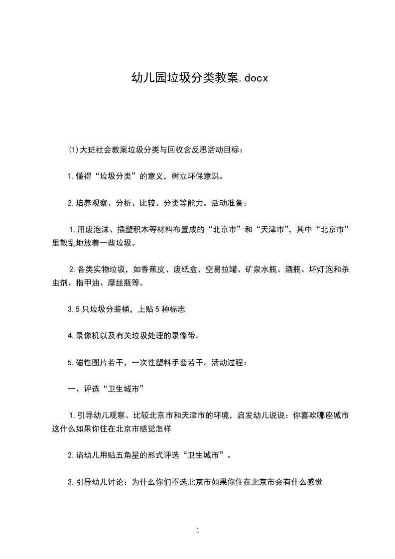 (1)大班社会教案垃圾分类与回收含反思活动目标: