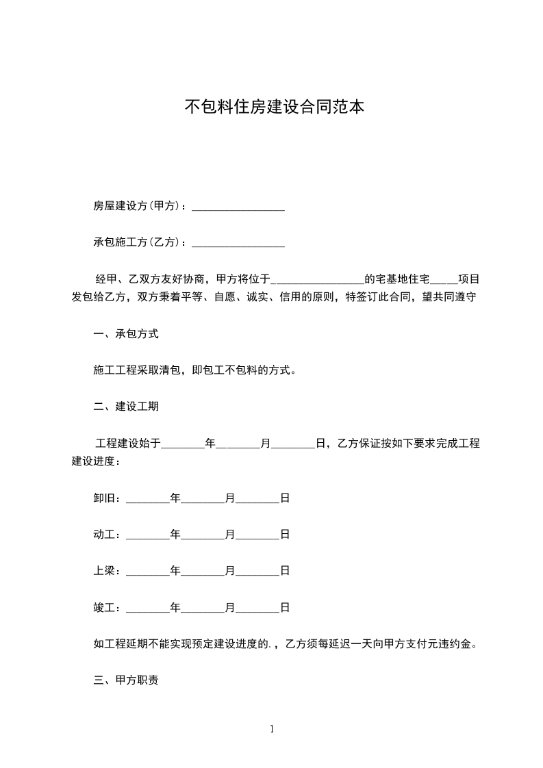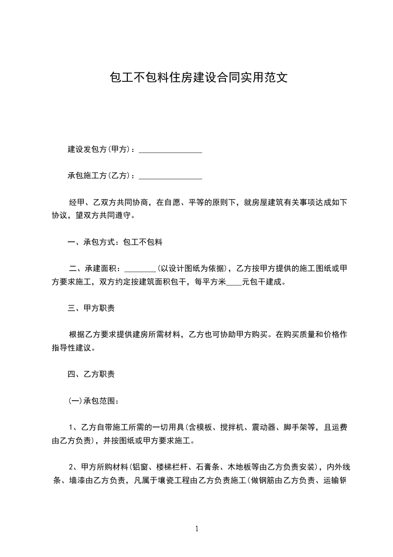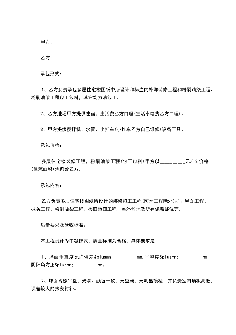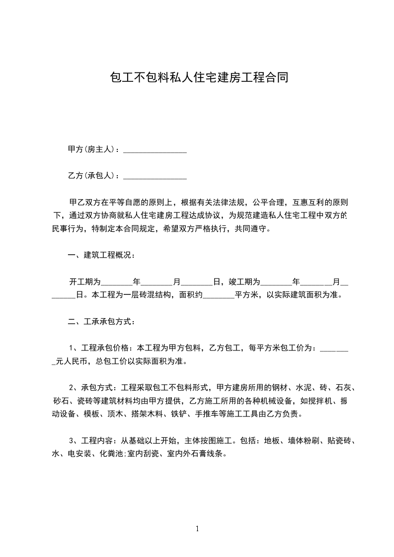一、承包方式:包工不包料