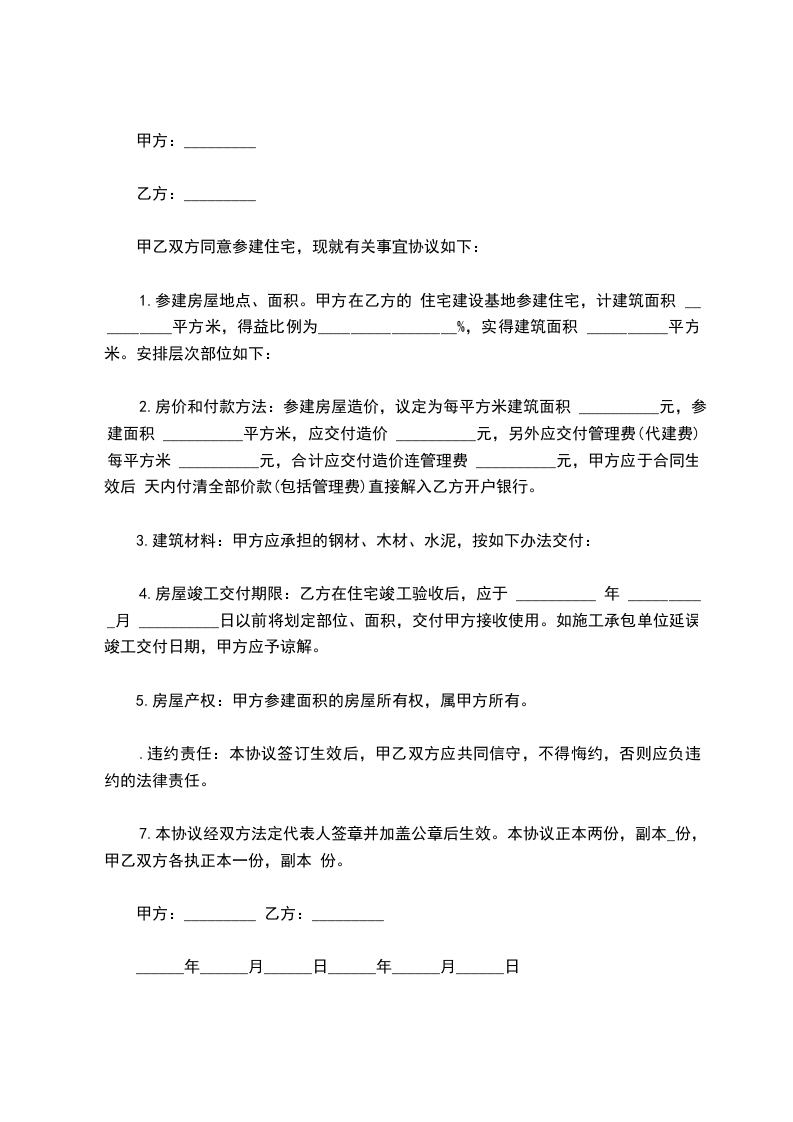 经甲、乙双方共同协商,在自愿、平等的原则下,就房屋建筑有关事项达成如下协议,望双方共同遵守。