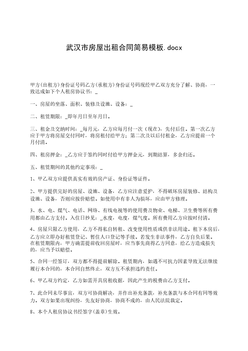 甲方(出租方)身份证号码乙方(承租方)身份证号码现经甲乙双方充分了解、协商,一致达成如下个人租房协议书:_