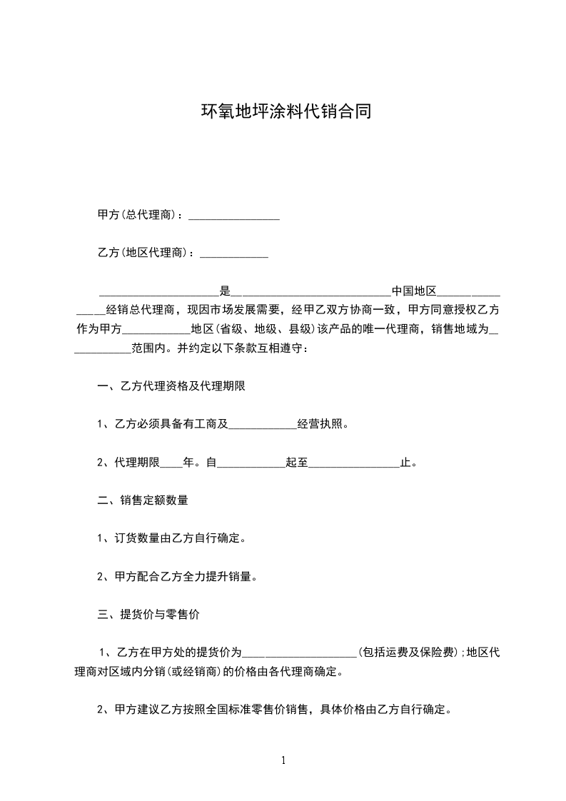 _____________________是____________________________中国地区________________经销总代理商,现因市场发展需要,经甲乙双方协商一致,甲方同意授权乙方作为甲方____________地区(省级、地级、县级)该产品的唯一代理商,销售地域为____________范围内。并约定以下条款互相遵守: