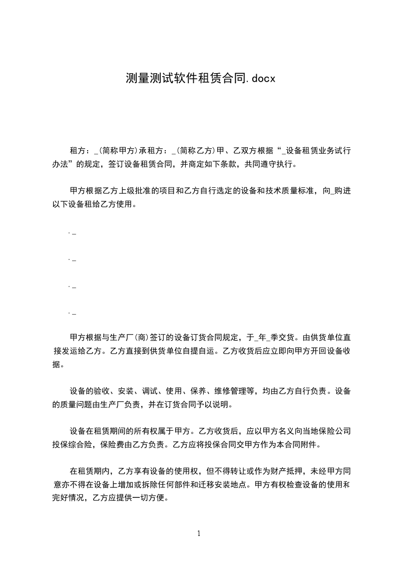 租方:_(简称甲方)承租方:_(简称乙方)甲、乙双方根据“_设备租赁业务试行办法”的规定,签订设备租赁合同,并商定如下条款,共同遵守执行。