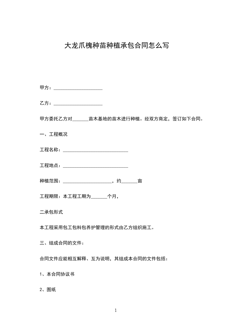大龙爪槐种苗种植承包合同怎么写