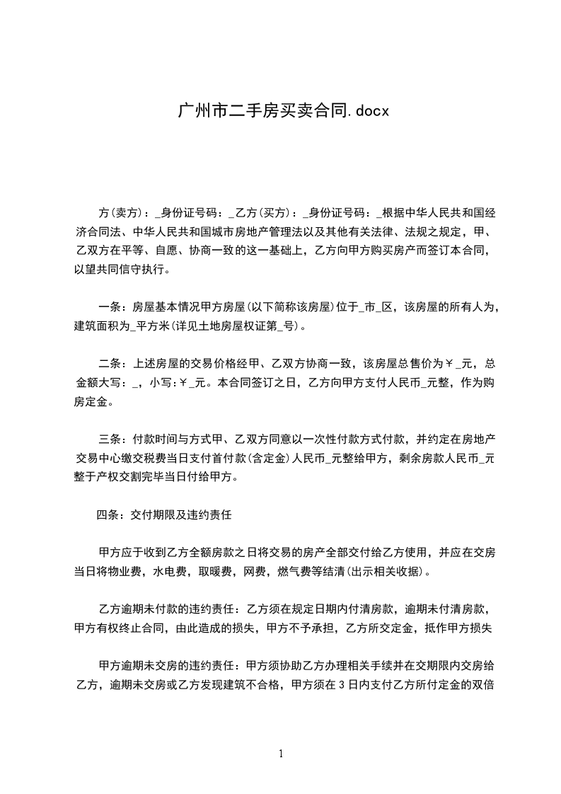 方(卖方):_身份证号码:_乙方(买方):_身份证号码:_根据中华人民共和国经济合同法、中华人民共和国城市房地产管理法以及其他有关法律、法规之规定,甲、乙双方在平等、自愿、协商一致的这一基础上,乙方向甲方购买房产而签订本合同,以望共同信守执行。