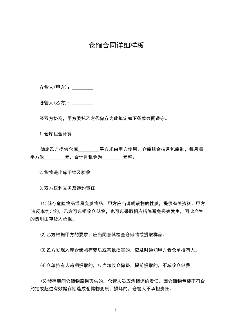 确定乙方提供仓库_________平方米由甲方使用,仓库租金按月包库制,每月每平方米_________元,合计月租金为_________元整。
