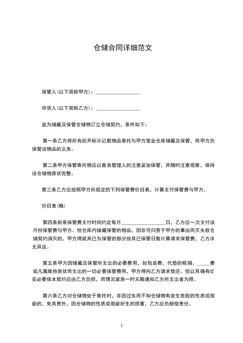 第三条乙方应按照甲方所规定的下列保管费价目表,计算支付保管费与甲方。
