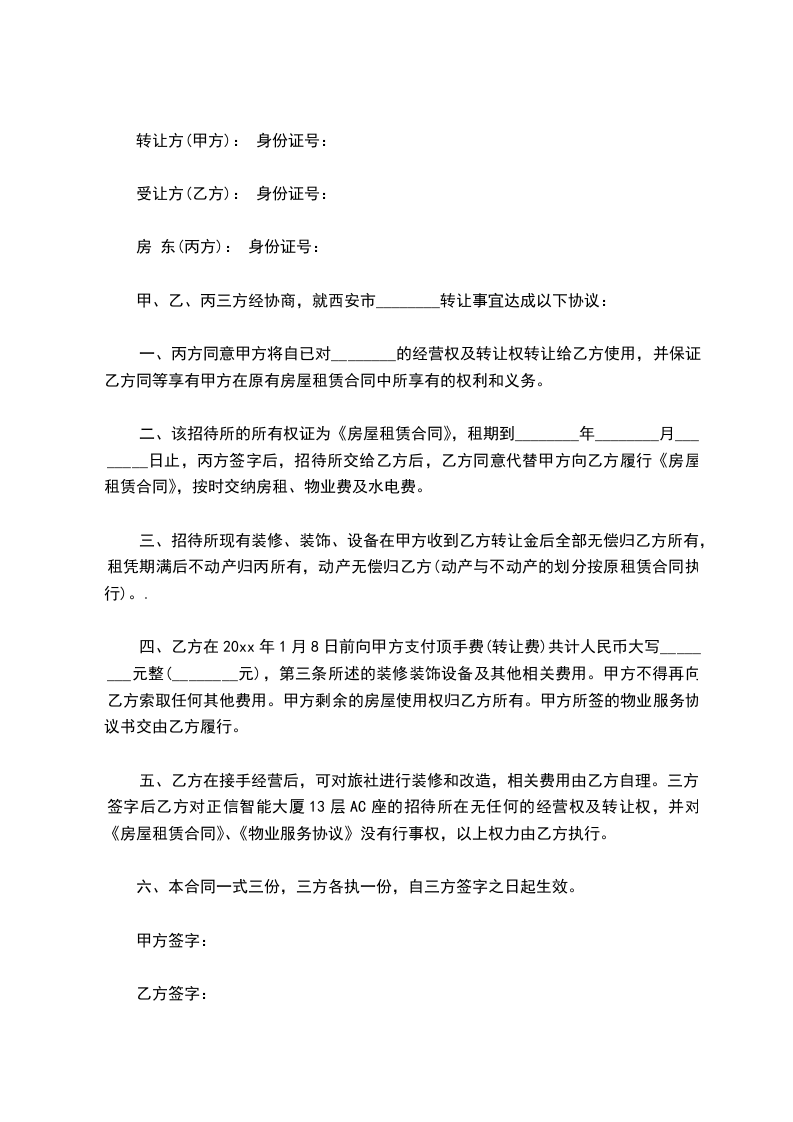 五、公司转让价款及支付方式:1、转让价款为人民币(大写)元,双方约定在本合同签订后三日内,乙方预支付甲方%转让价款(包括20金,适用定金规则)。