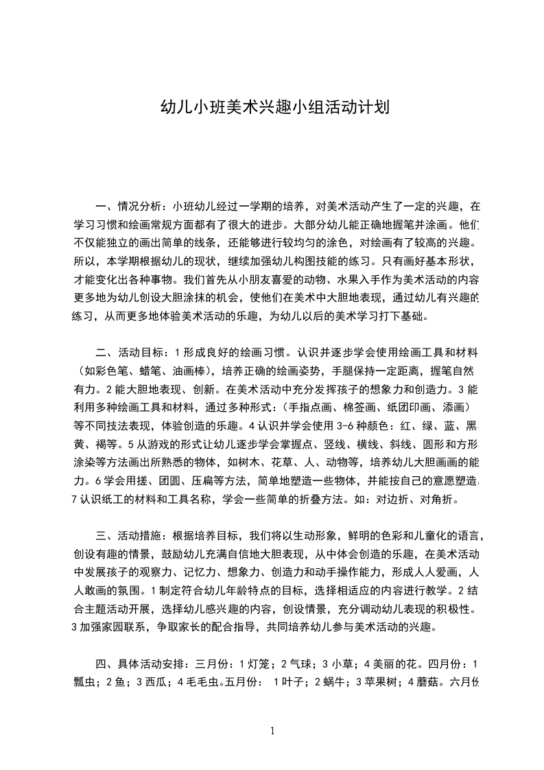 注重幼儿美术兴趣的培养.通过活动,培养幼儿动手能力、培养幼儿参与的兴趣。