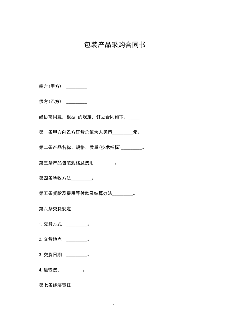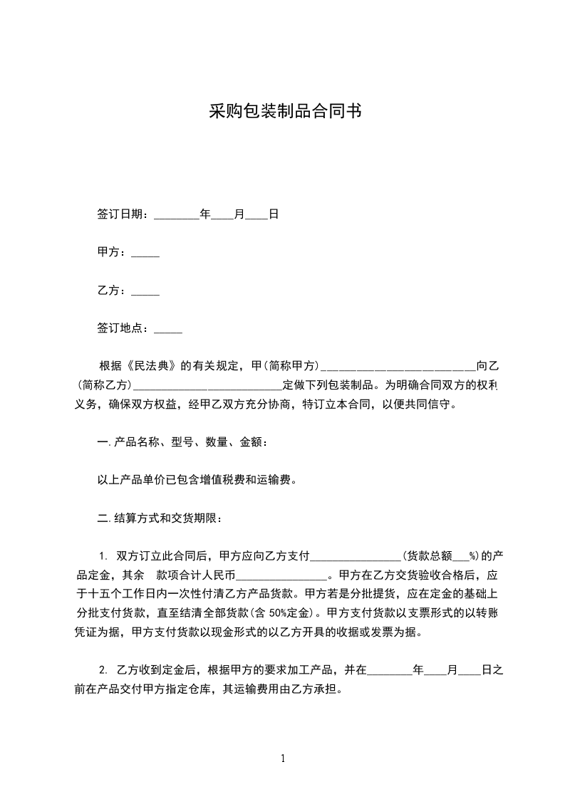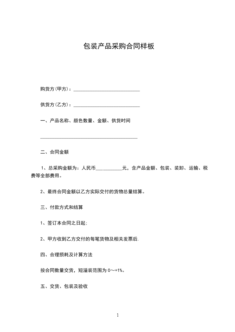 1、总采购金额为:人民币___________元,含产品金额、包装、装卸、运输、税费等全部费用。